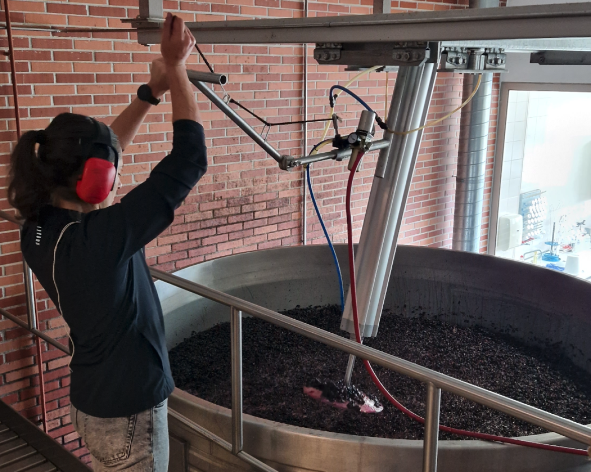 É sempre um momento especial na adega, inundada pelos cheiros e pelas cores que denunciam o que está a acontecer: a vindima dos tintos. As uvas continuam a chegar à mesa de escolha e lá em baixo segue todo o processo, desde a pisa mecânica, às remontagens e às desencubas. E os aromas tornam o ambiente inspirador e apaixonante. É precisamente a operar a pisa mecânica, nos gigantes lagares de inox, que vamos encontrar a Clarice Gomes, mais um sorriso que se juntou à equipa Kranemann Wine Estates, para a vindima de 2023.